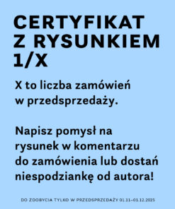 - Certyfikat z rysunkiem autora, który zamówisz w komentarzu do zamówienia. Certyfikatów będzie tyle, ile gier w przedsprzedaży.